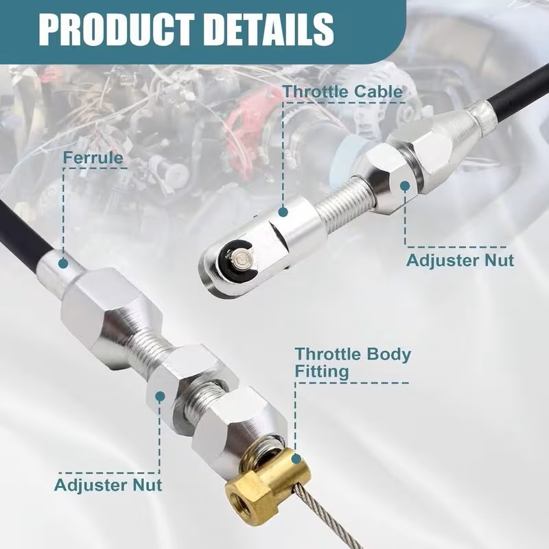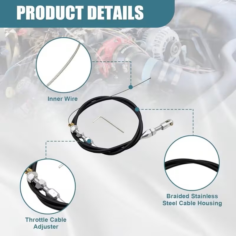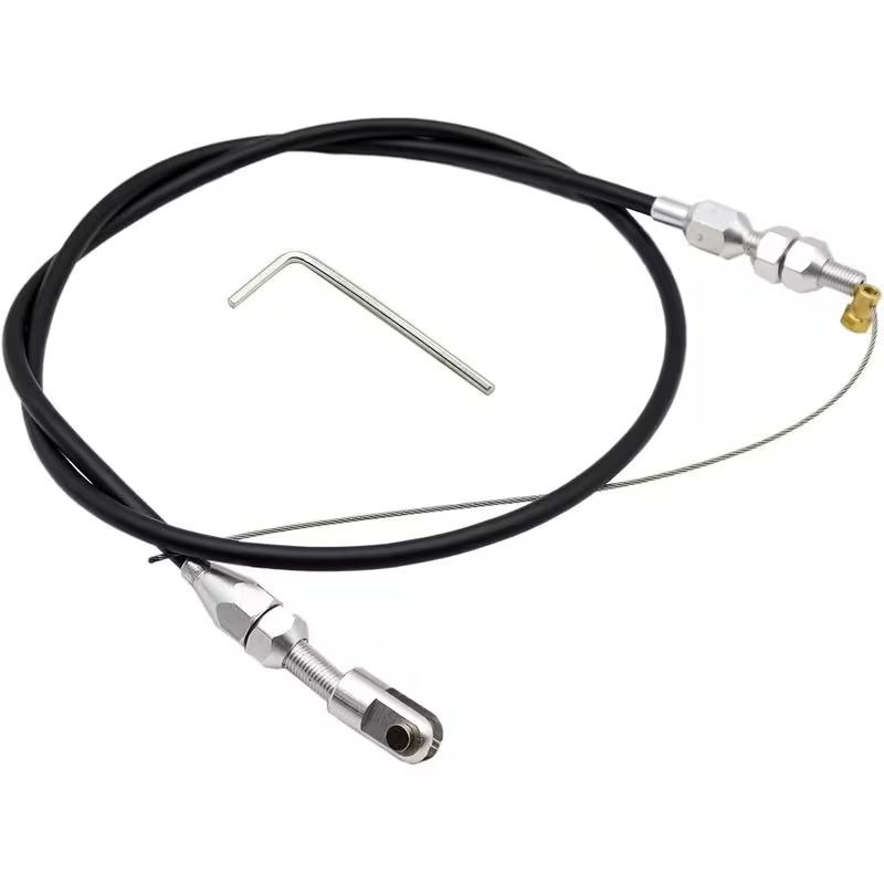 Svart gaswire som passar många LS-motorer men kan användas som universal gaswire till de flesta motorerna med liknande infästningar. Är vajern för lång kan man kapa den.