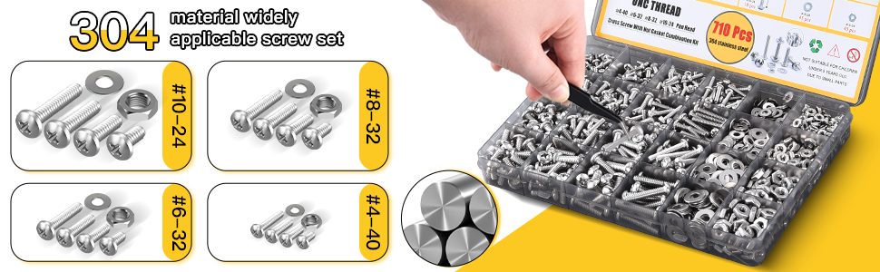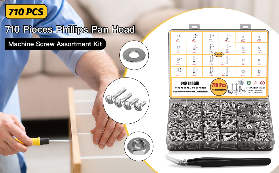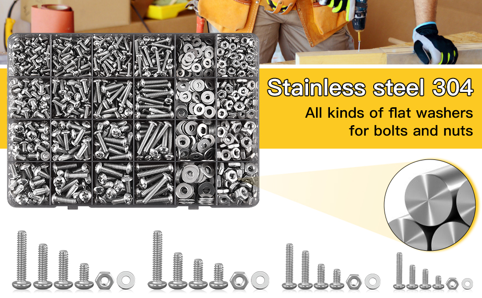 Säljs i kit om 710 bultar, brickor och muttrar.