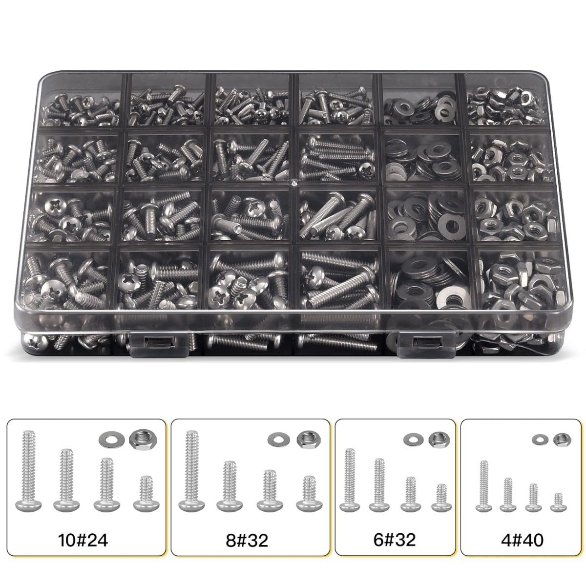 - Dimensioner: #4-40, #6-32, #8-32, #10-24,