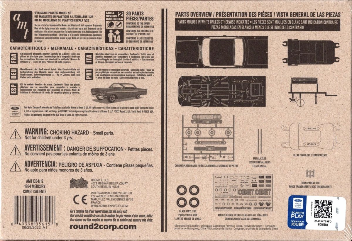 AUTHENTIC DETAILS: The 1964 Mercury Comet Caliente features one of our classic model kits with added goodies! Fully paintable, the model kit includes whitewall tires, chrome bumpers and wheels, bucket seats, detailed chassis, clear red taillights, ALL-NEW colorful water-slide decals, and more—all wrapped up in eye-popping, vintage-style packaging!