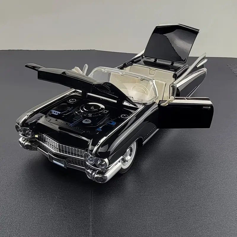 Snygg detaljerad färdigbyggd metallbil i skala 1:20. Bilen har öppningsbara dörrar, huv, skufflucka samt fungerande styrning. Desutom har den batteridriven belysning och motorljud. Med ett tryck på ratten startas belysning och ljud.