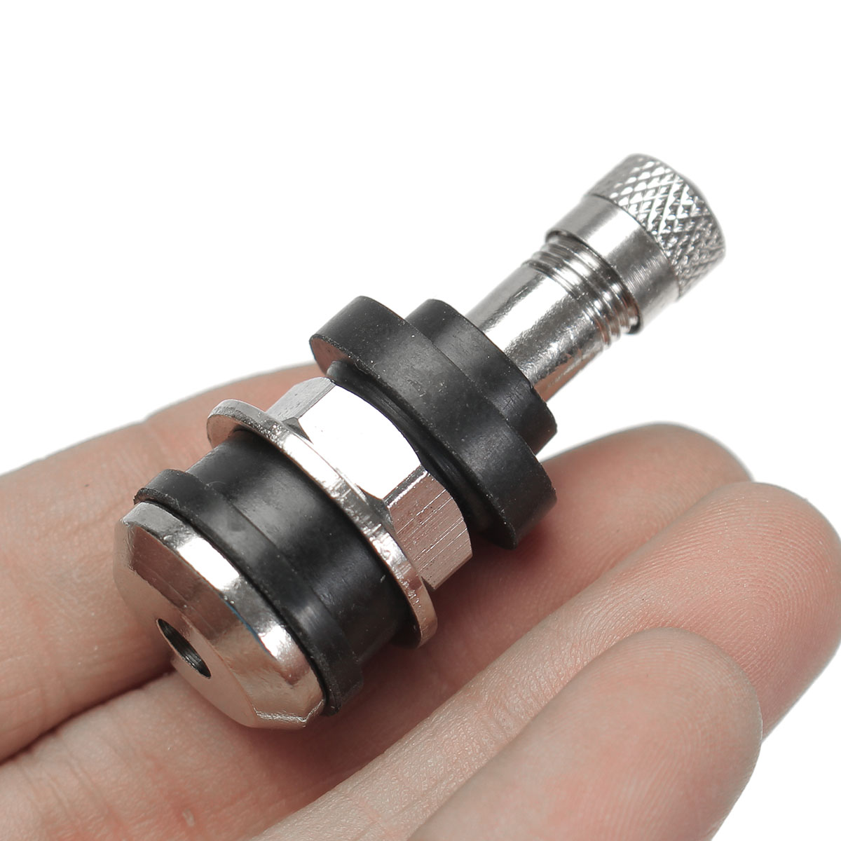 Däckventil som skruvas fast i fälgen, passar både 11,5 och 15,8 mm hål.