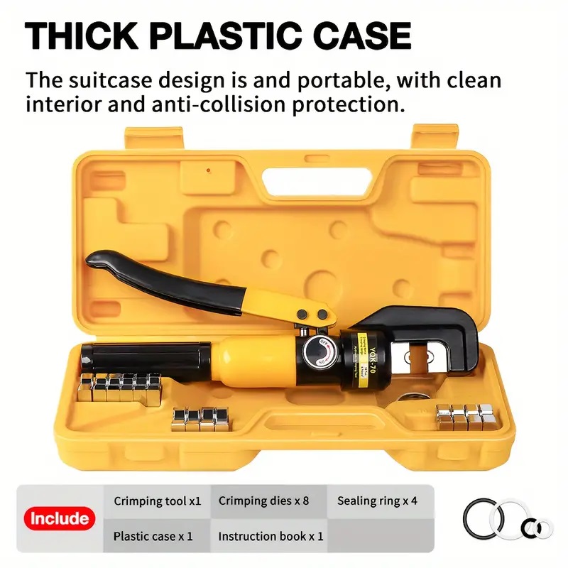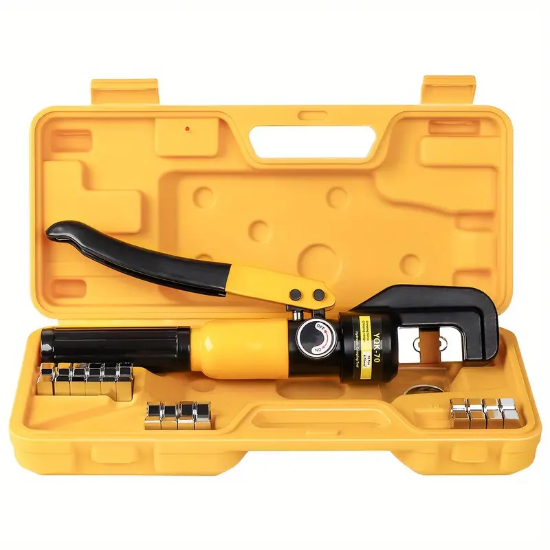 En gedigen hydraulisk presstång som ger gastäta 6-kantiga pressningar av kabelskorna. Detta kunde man bara tidigare få från verktyg som kostade tusentals kronor.