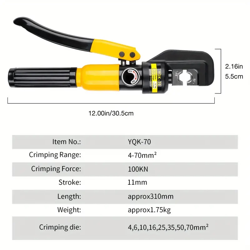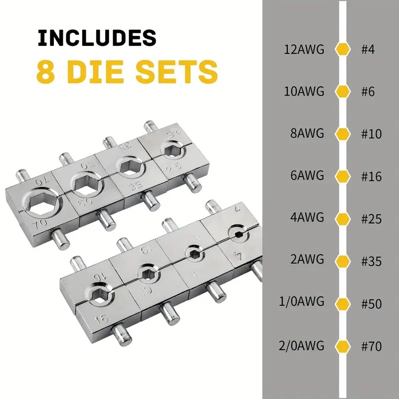 - Pressdimensioner AWG: 12, 10, 8, 6, 4, 2, 1/0, 2/0,