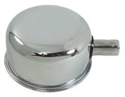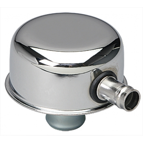 Kromat oljepåfyllningslock 25 mm med slanganslutning 90-grader.