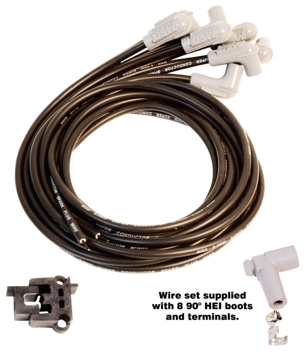 MSD tändkablar 8,5 mm, HEI/Non-HEI, svarta halvklara, 90-grader.