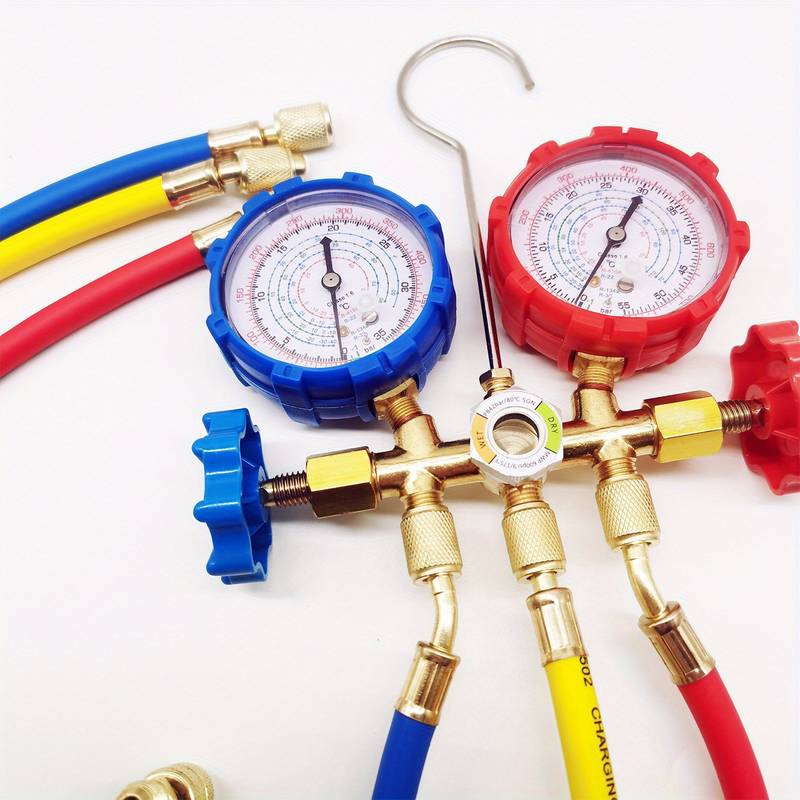 Sats för att själv kunna diagnostisera eller fylla på köldmediet i A/C-anläggningar tex bilen, värmepumpen etc. Funkar med olika köldmedel såsom R134A, R410A, R32, R22.